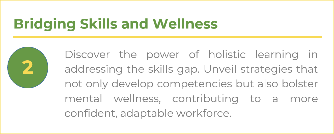 Workshop Focus: Emphasize the role of holistic mental health in enabling skill development. Explore ways to encourage continuous learning and professional development that not only upskills employees but also promotes mental well-being.